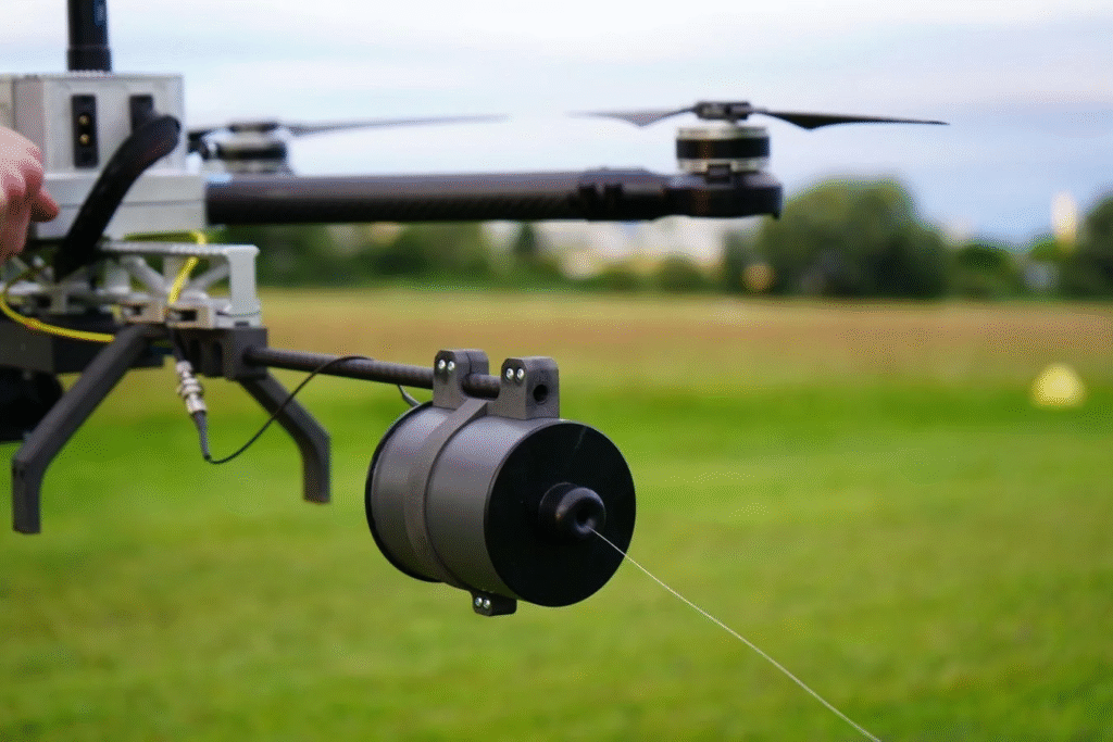 Precision strike platform tethered with ultra-secure communication spools. Immune to jamming and ideal for high-threat zones.